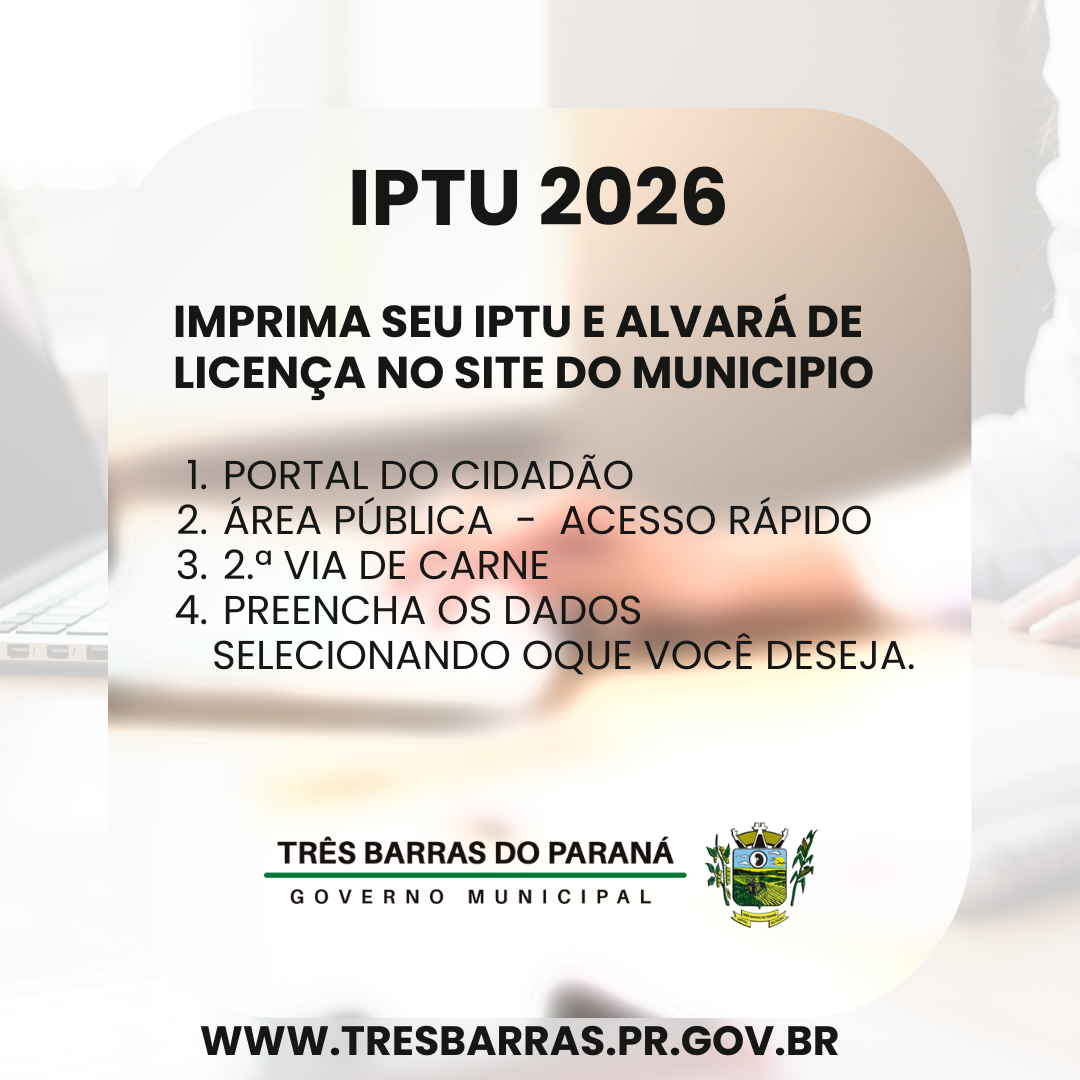 Sucesso na Campanha de Vacinação Antirrábica no Jardim Floresta Notícias 10 Dezembro 2025 Leia mais... Três Barras do Paraná Conquista o "Selo Ouro em Qualidade da Transparência" na Avaliação ITP 2025! Notícias 10 Dezembro 2025 Leia mais... NOTA OFICIAL Notícias 10 Dezembro 2025 Leia mais... Biblioteca Pública Profª Ildeli Pereira Pansera Realiza Mais uma Edição do Projeto de Incentivo à Leitura Educação 10 Dezembro 2025 Leia mais...