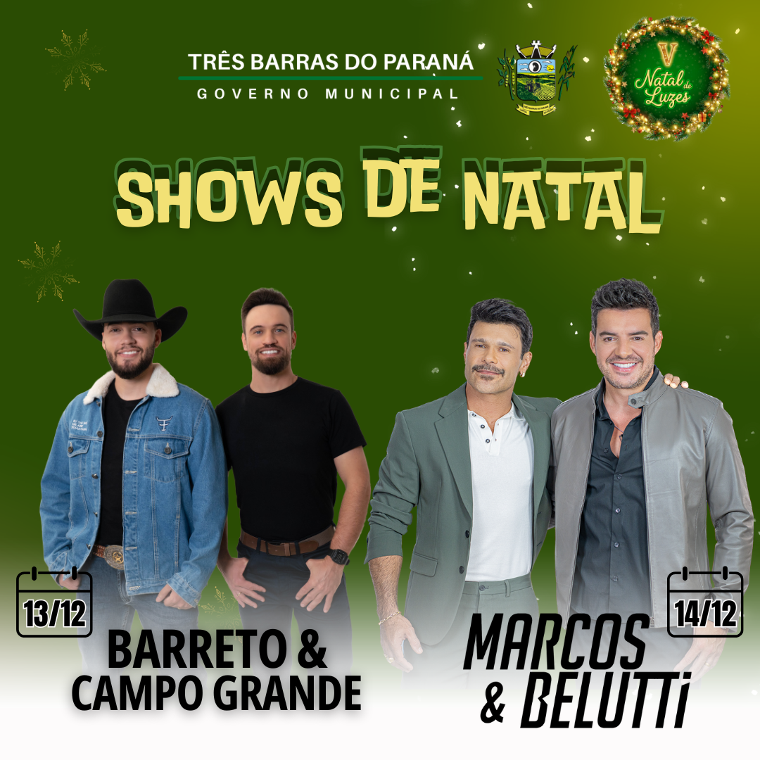 O Governo Municipal de Três Barras do Paraná convida você e sua família para os Shows de Natal que prometem aquecer seu coração!